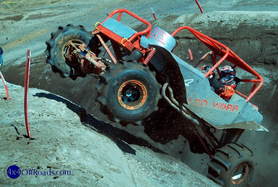 y para las laderas de arena volcánica, existe la Formula Off Road.Poco se reconoce de un vehículo de marca en estos aparatos. Son maquinas alucinantes, preparadas únicamente para trepar, en terrenos tan sueltos como sea posible. Son casi jaulas antivuelco con una transmisión y motor. Lo más particular son las ruedas, creadas especialmente para estos vehículos.