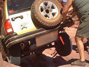 El bumper delantero, con barra de faros, bandeja de malacate y chapon de proteccion, el paragolpes trasero y el portaequipaje son hechos por Tierra Negra, alojando un malacate Ramsey 8000 en el frente y un poderoso equipo de iluminación mediante faros Hella: Los del bumper son Hella Rally 3000 y los de la baca Hella Jumbo 220.